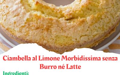 Ciambella al Limone Morbidissima senza Burro né Latte Ingredienti 330 g di farina 00 4 uova medie intere 200 g…