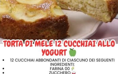 Torta di Mele 12 Cucchiai allo Yogurt Ingredienti:12 cucchiai abbondanti di ciascuno dei seguenti ingredienti:Farina 00 Zucchero Yogurt a piacere…
