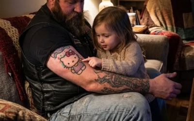 Un motociclista indurito dalla vita ha scelto un gesto inaspettato per riavvicinarsi alla figlia spaventata: si è tatuato una giocosa Hello Kitty sul braccio. Quello che era iniziato come un semplice atto di rassicurazione ha lentamente trasformato il loro legame e ha cambiato la percezione che la bambina aveva di suo padre.