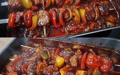 Fantastico shashlik con salsa shashlik fatta in casa Ingredienti per lo shashlik: 800 g di maiale o pollo a cubetti…