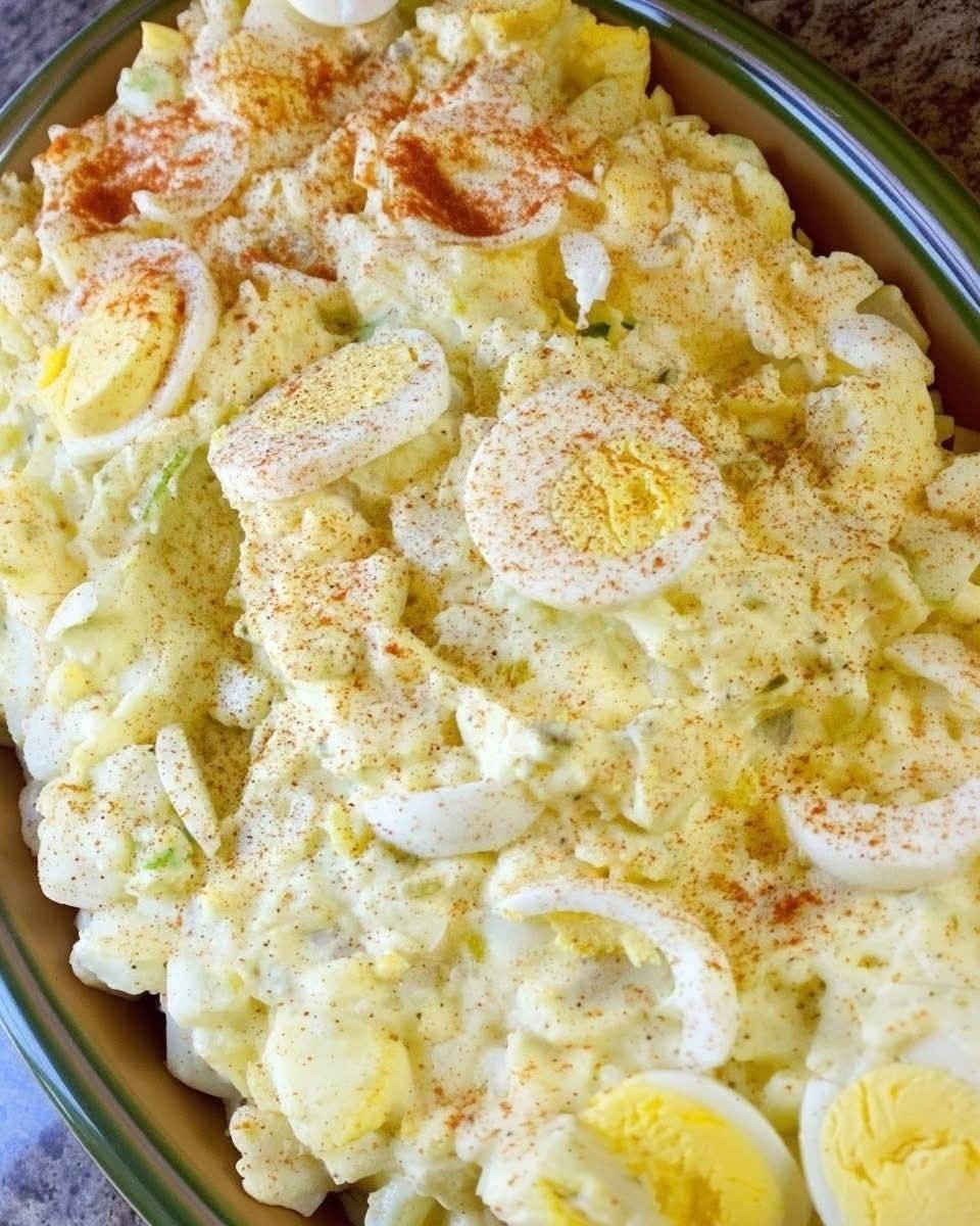 Quando si parla di comfort food sostanzioso, una grande ciotola di cremosa e saporita insalata di patate in stile del Sud con uova è imbattibile. Patate tenere, una salsa di cetriolini sottaceto, sedano, cipolle e un condimento di maionese e senape perfettamente bilanciato, il tutto guarnito con uova a fette e una spolverata di paprika. Ideale per barbecue, pollo arrosto, picnic e riunioni di famiglia.