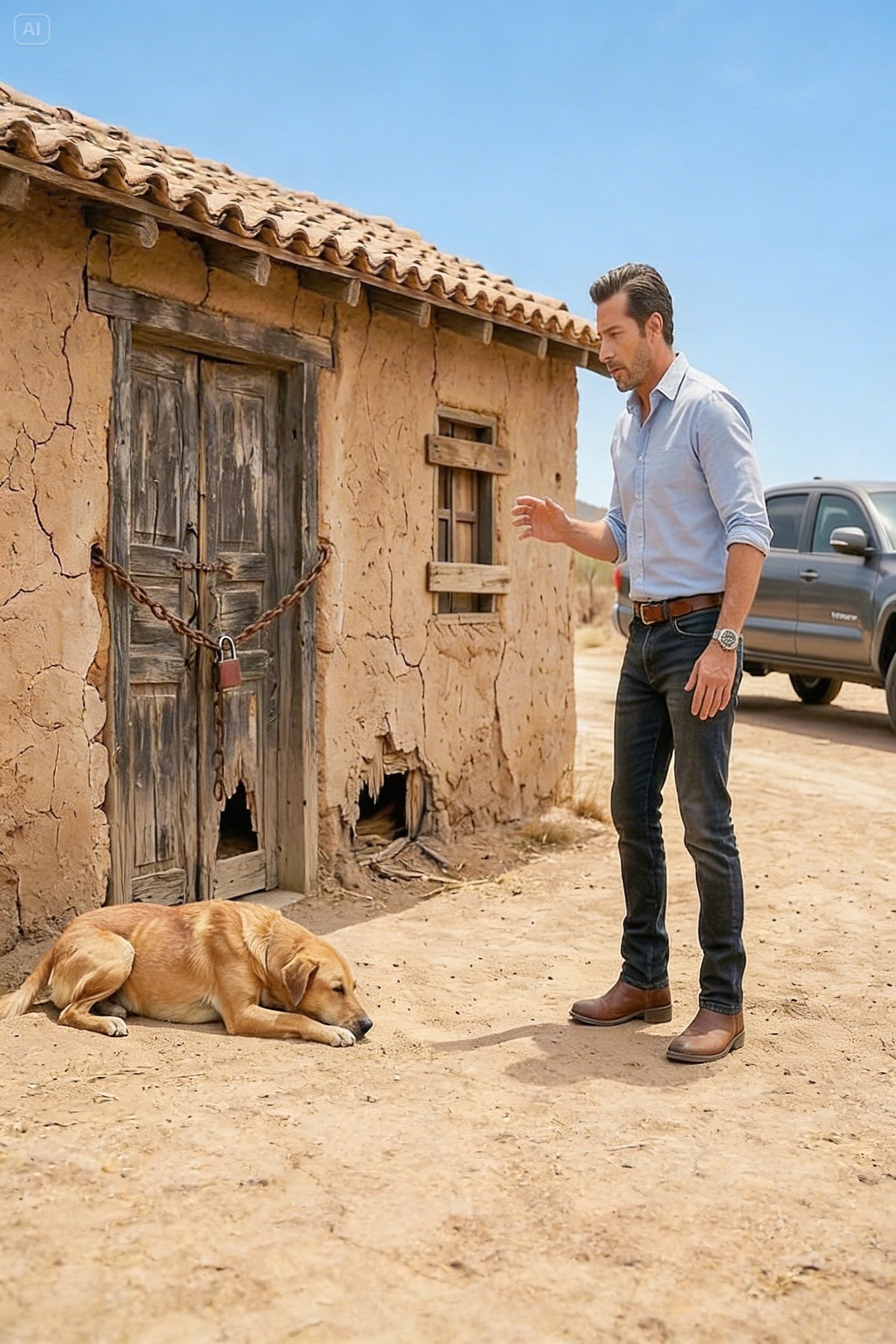 Rodrigo cruzó la frontera de regreso dopo 6 anni. Traía una camioneta nueva, dinero en el bolsillo y un único deseo, abrazar a su madre. Ma quando llegó a la casa de barro donde creció, encontró las ventanas clavadas con tablas, la puerta amarrada con una cadena oxidada y un perro flaco con las costillas marcadas, echado en la entrada como si llevara meses esperando a que alguien viniera. Rodrigo pegò l'orecchio alla porta e scuchò qualcosa all'interno.