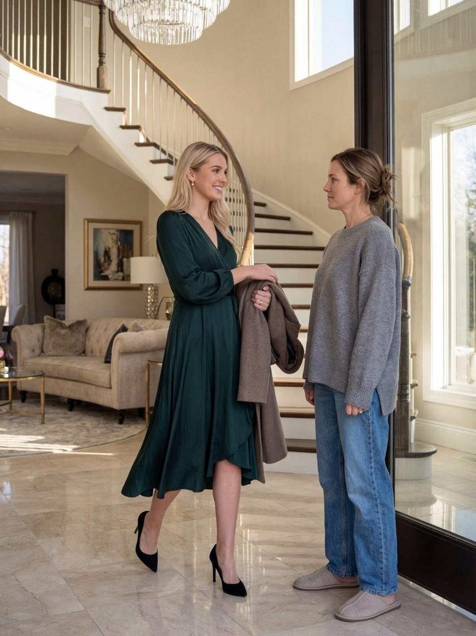 Non con una discussione accesa o un confronto drammatico. Non con una telefonata a tarda notte o un messaggio scoperto per caso. A volte la verità arriva alla tua porta, suona il campanello ed entra indossando un cappotto costoso.