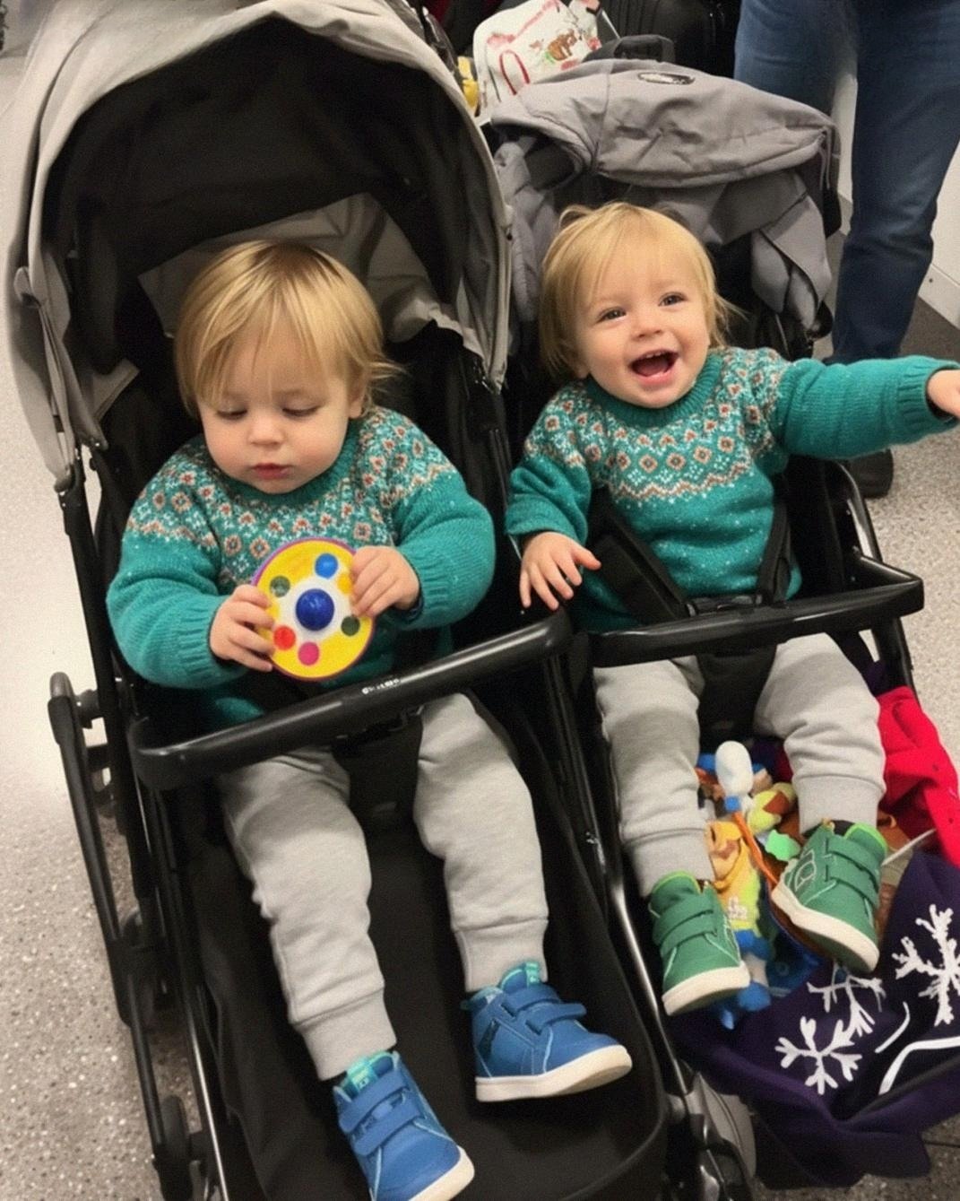 Avete presente quel momento in cui sapete che il vostro partner sta per fare qualcosa di folle, ma il vostro cervello non ve lo permette? Ecco, questa sono io, in piedi al gate del Terminal C, con le salviettine umidificate che spuntano dalla tasca, un gemello legato al petto e l'altro che mi mastica gli occhiali da sole.