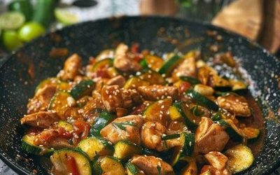 Pollo e zucchine in salsa di soia Ingredienti – 500 g di petto di pollo, tagliato a pezzi – 2…