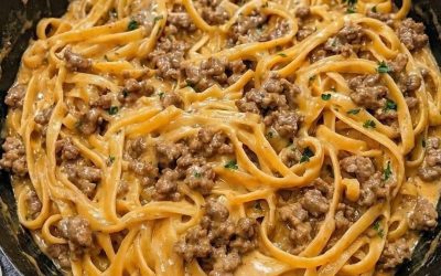 Pasta cremosa al burro e aglio con carne macinata: un comfort food semplice e veloce da preparare in un'unica pentola…