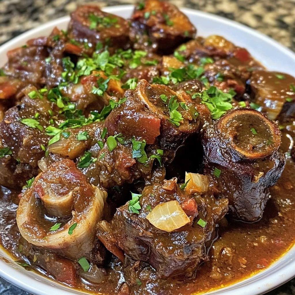 1,5 kg di coda di bue, condita con sale e pepe nero a piacere;