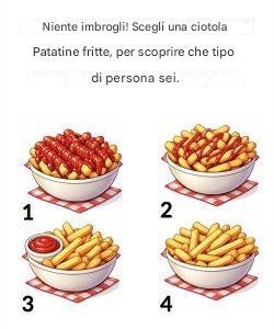 A prima vista, sembra solo una ciotola di patatine fritte. Ma le scelte, soprattutto quelle più semplici, spesso riflettono sottili tratti della personalità. L'immagine ti sfida: "Non barare. Scegli una ciotola di patatine fritte e scopri che tipo di persona sei."