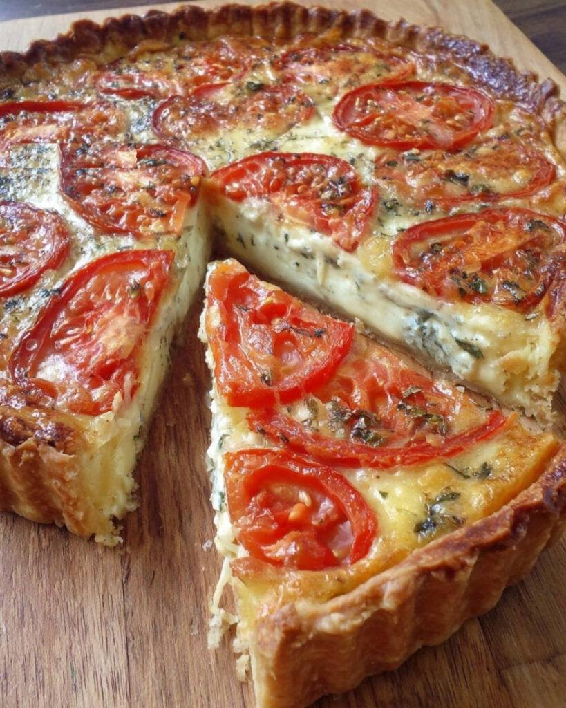 Questa torta di pomodori con mozzarella ed erbe aromatiche è un piatto semplice e delizioso, perfetto per un pasto leggero o un picnic. La combinazione di pomodori succosi e mozzarella filante con le erbe aromatiche delizierà il vostro palato.
