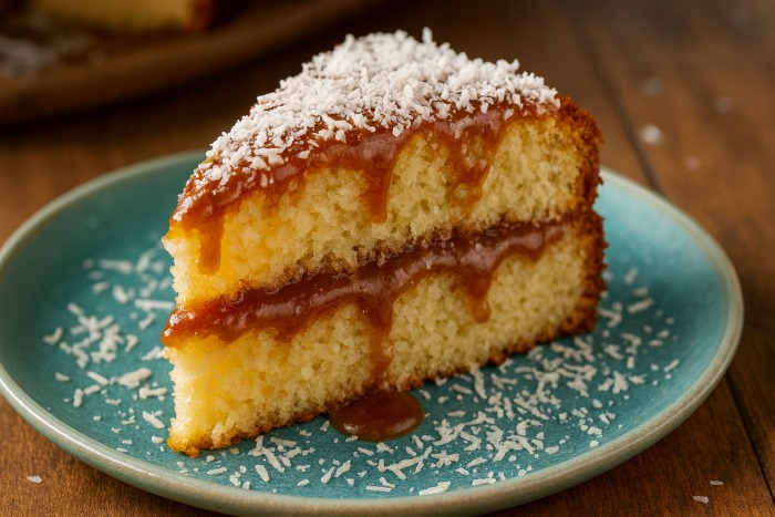 Ingredienti per una torta al cocco soffice con dulce de leche