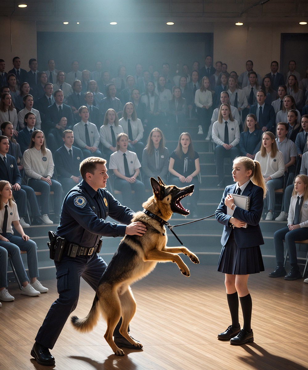 La City High School n. 17 stava tenendo una "lezione aperta" sulla sicurezza. Studenti, insegnanti e genitori si erano riuniti nel grande auditorium, ansiosi di vedere cosa sarebbe successo. Un agente di polizia in uniforme salì sul palco. Il suo partner, un pastore tedesco di nome Rex, camminava tranquillamente al suo fianco.
