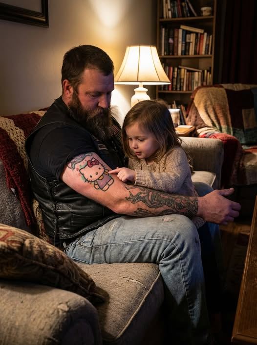 Un motociclista indurito dalla vita ha scelto un gesto inaspettato per riavvicinarsi alla figlia spaventata: si è tatuato una giocosa Hello Kitty sul braccio. Quello che era iniziato come un semplice atto di rassicurazione ha lentamente trasformato il loro legame e ha cambiato la percezione che la bambina aveva di suo padre.